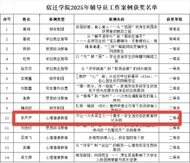 从教以来,李严严老师始终扎根学生工作一线,将理论研究与育人实践紧密结合,聚焦网络思政、心理健康教育等领域持续探索创新。此次两项作品获奖,既是对其个人育人工作的肯定,也为宿迁学院辅导员队伍专业化建设提供了鲜活范例。未来,李严严老师将继续深耕育人阵地,用更具温度与深度的工作实践,助力青年学生成长成才。